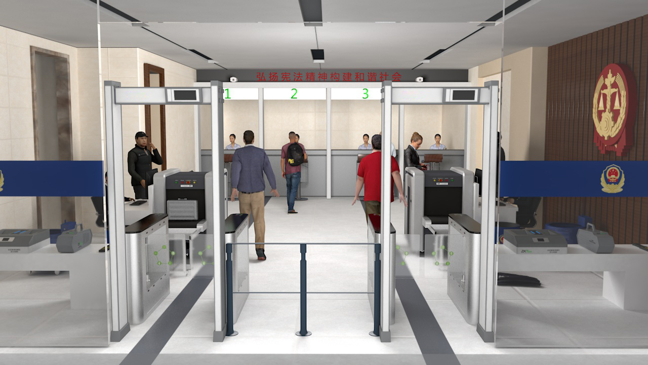 因暴力恐怖事件的日益增多,公安機關、檢察院、法院等司法檢查機關偶有發生暴力沖撞事件,對進出此類場所的人員不但要進行安全檢查,還需要對身份進行核驗。 人行、物檢等全方位的安全檢查系統與生物識別通道閘安防系統,并聯網形成統一管理,實現進出人員的安全管理,人行、物檢等全方位的安全檢查系統包括檢查出入人員人體是否攜帶金屬違禁物品、包裹是否攜帶違禁品。生物識別通道閘安防系統實現進出人員身份的驗證及記錄。
